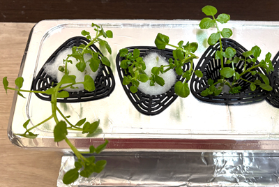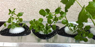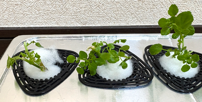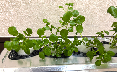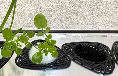 ルッコラ1部屋分に、根を育てていたクレソンをお引越しさせ、クレソン2部屋に。