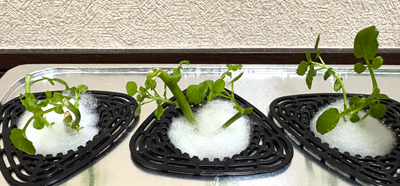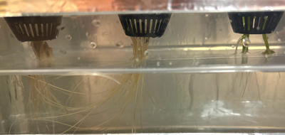 もともとの2株はとても順調で、根もキレイ。左側は葉がほぼなかったので、光合成できない分、成長が遅くなっちゃったかな。