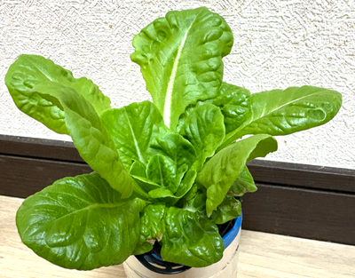 もっさりしてきたし、一番外側の葉が陰になって成長しきれてないのも見えたので、収穫