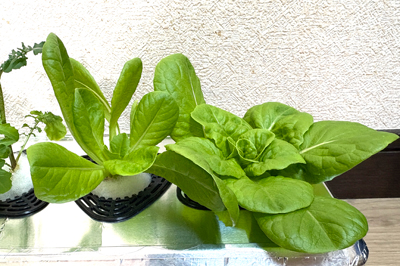 ルッコラサラダのためにサラダ菜ちゃんも葉っぱを頂いちゃいます。