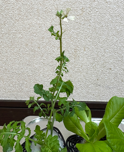 この子は終了と思いきや、ルッコラの花も食べられるとの事なので、このまま育てて花を頂きましょう!