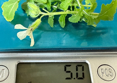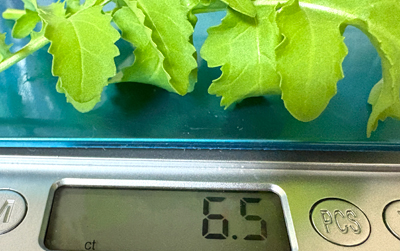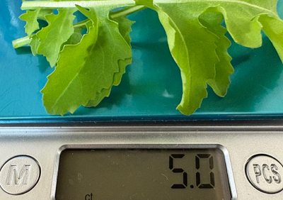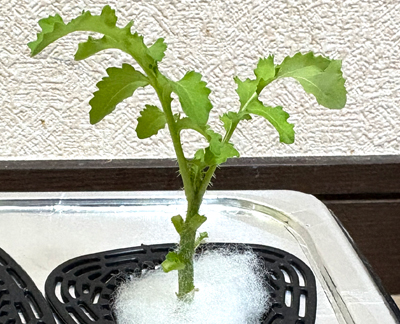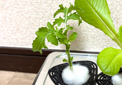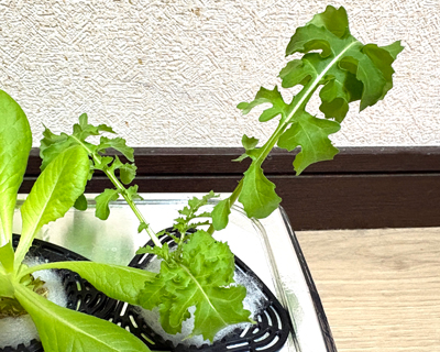 1株になったルッコラさんも2枚の葉が大きくなったので、2枚頂きます。