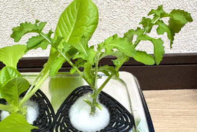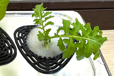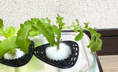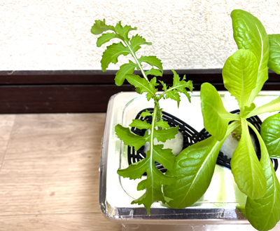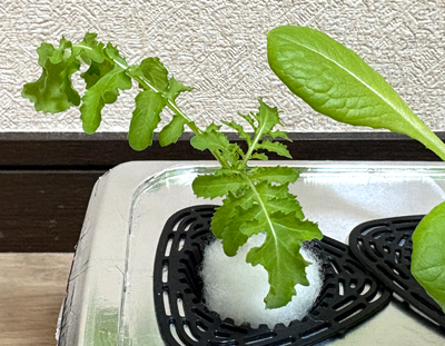土耕栽培出身のルッコラ1姉妹は2株ずつにして2部屋にご案内。