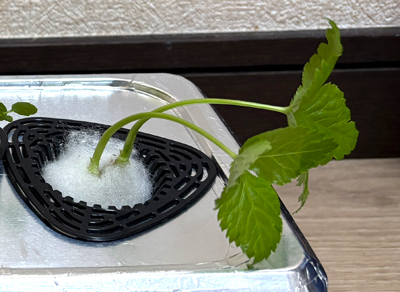 | 注意点 | ■種が乾燥に弱いため一晩水に漬けてから蒔く■光が強いと茎が硬く、葉の色が悪くなる(少し暗いほうが美味しく育つ)■スポンジが乾燥すると発芽しないので、発芽まで保湿を徹底 |
