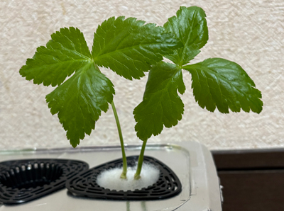 葱が水菜容器にお引越ししたので、大きな容器は3室空きがあるので、こちらに1株。もう1株は念のためペットボトル栽培。