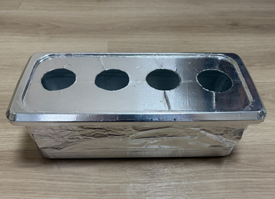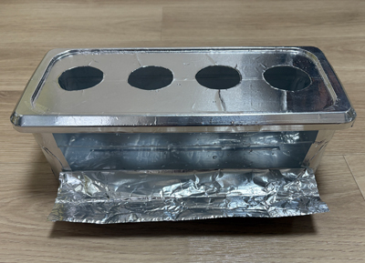 それぞれに定植穴を4つ開けて防水アルミテープで中に光が入らないようにテーピング!