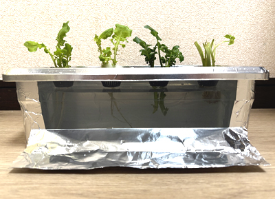 光を遮るのは、根が光を嫌うのと、水に藻が生えてこないように。藻も液肥を摂取するから邪魔者なのだ。