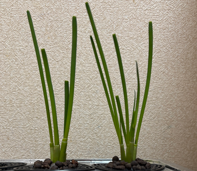 | 注意点 | ■ネギは根が酸欠になって腐るので、根を全部水に浸けず茎に近い部分は空気に触れさせる■多少密集しても育つが、あまりギチギチだと風通しが悪くなり、病気になったり、細すぎる葱に■再生栽培(リボベジ)などで収穫した直後、切り口から水が入るとそこから腐ることがある■収穫(カット)は、晴れた日の午前中に行い、切り口をすぐに乾かすのが理想的 |