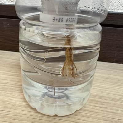土耕で培った根は全滅。でも水耕栽培特有の根が2本。白くきれいな根が!