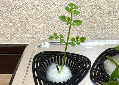 セリちゃんは土耕出身なので、根がしっかり。水耕に順応してくれるだろうか。